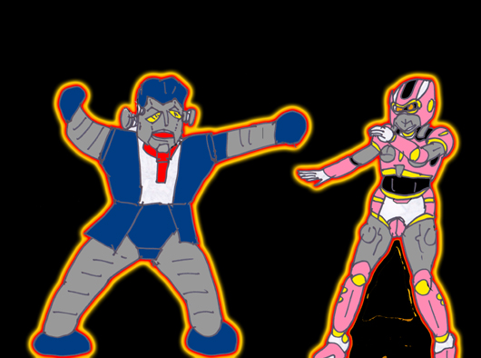 伸縮自在の腕と、怪力の前に追い詰められる二人。また、外装も硬く、隼人の剣も拳も受け付けない。ついに、由香が捕まってしまった。