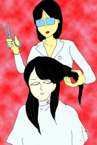 由香の美しい髪に、仁子が鋏を入れる・・・。由香が髪を短くするのはこれが生まれて初めてである。最も、改造手術の際一旦全てそり落としたことはあるが・・・。