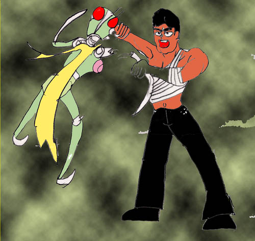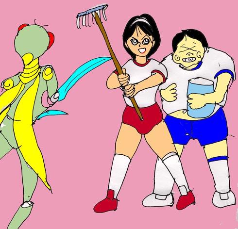 「キャーーー!蟷螂のお化け!えーい、あたいがやっつけてやる!」