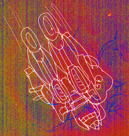 香織は、単身迎え撃つ。今回の出撃に当り、右胸を回転速射砲に換装し、ベルト給弾により半永久に打ち続けられるようにして敵の大群に挑む。