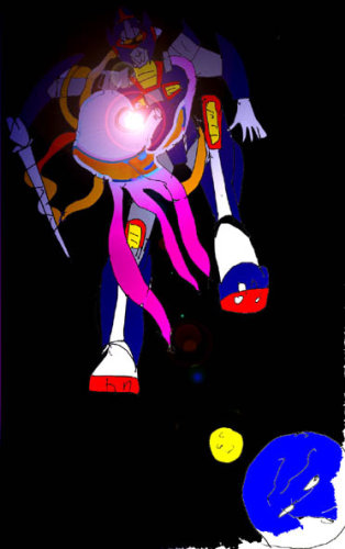 しかし、最後の力を振り絞り、アブのリーダー格に対して左胸(オリジナル)からバリヤーカノン(本来拡散して相手を包んだり,身を守るバリヤーを、塊にして発射したもの)を浴びせ、これを追い払った。