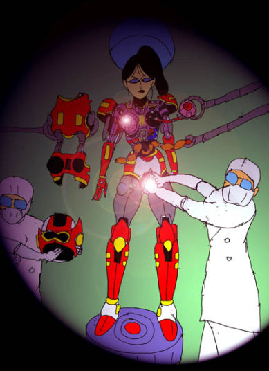 続いて、香織の装甲が剥がされ、内部の回路や電装品、それに生体部品が露になる。細川博士と仁子はそれを手際よく設計図に従って切り取り、また取り付けていく。