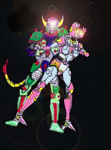 合体して戦う二人! |