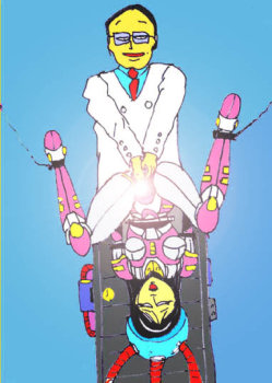 由香のサイボーグとしての機能をチェックする、叔父の細川博士 |