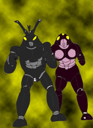 キングビートルは、そう宣言した。後ろには、良く似た姿だが角のない、そして胸にふくらみのついた♀のカブトムシ型人間がいた。