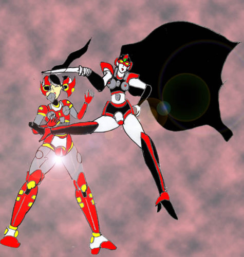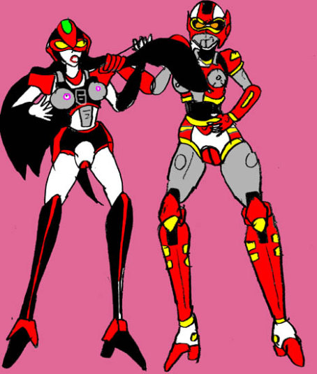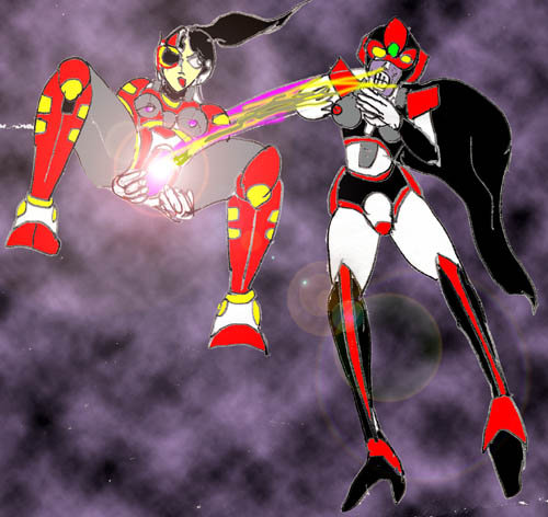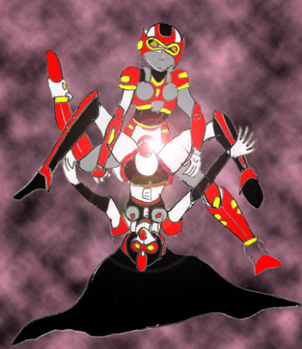 女も、股間に入れておいた特殊バイブを起動した。すると・・・真っ赤に輝く金属の体のサイボーグに変身したのだ。