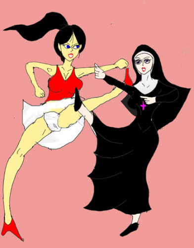 いきなり女はシスターに蹴りつけた。だが同時にシスターも蹴り上げる。