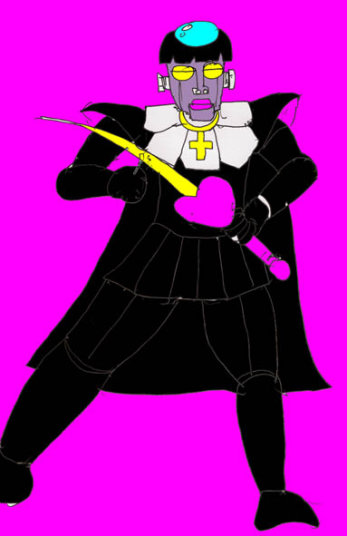 「神を恐れぬ罰当たり者。地獄に落ちるが良い。」神父はサイボーグの正体を現した。